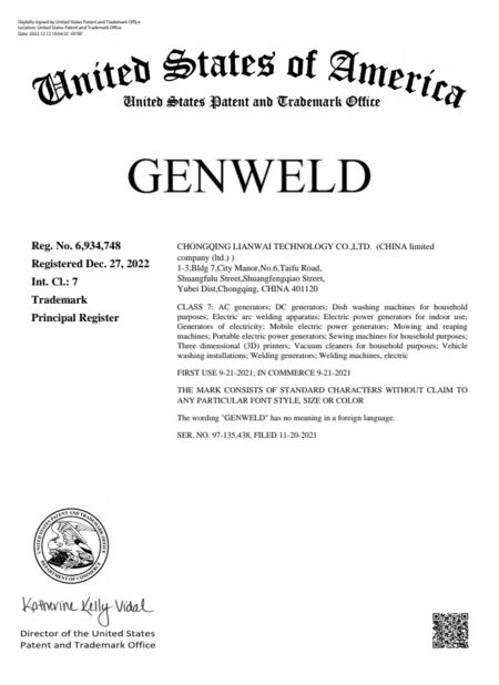 Padrão: Trademark registrationNúmero: Reg.No.6,934,748Data de Emissão: 2022-12-27Data de Expiração: